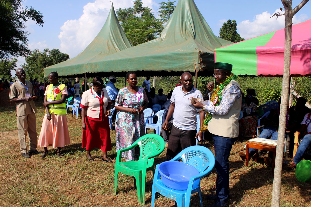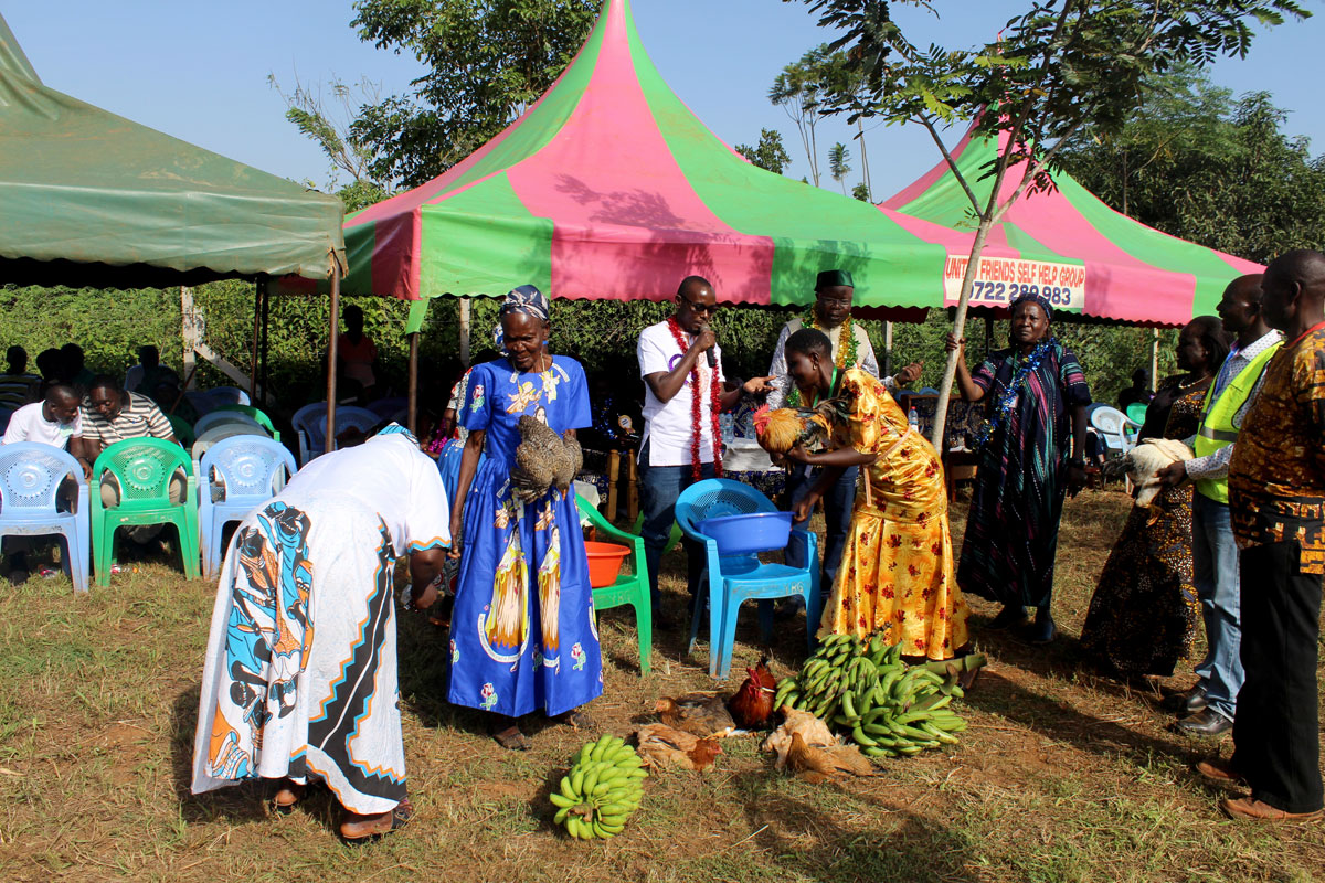 Area MCA Camulus Magawa and community elders handing over a token of appreciation to the Chief Guest Mr. Rogers Mukani